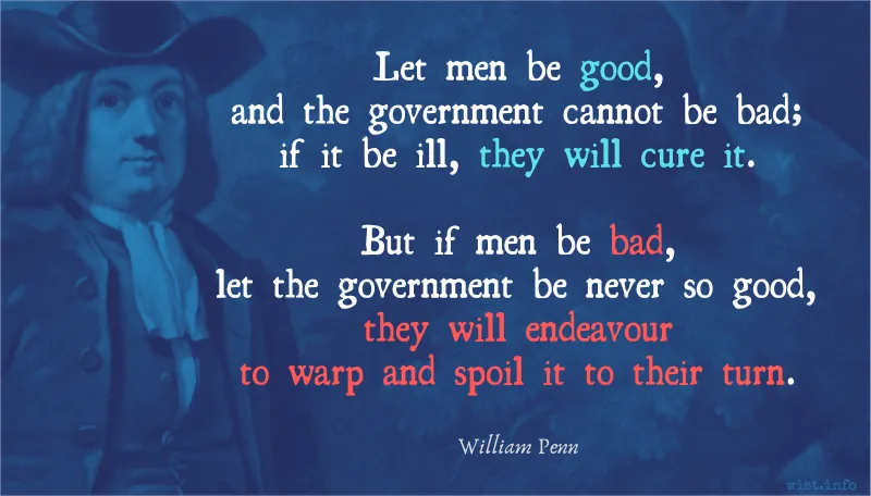 In a virtuous community men of sense and principle will always be placed at the head of affairs. In a declining state of public morals men will be so blinded to their true interests as to put the incapable and unworthy at the helm. It is therefore vain to complain of the follies or crimes of a government. We must lay the hands on our own hearts and say, Here is the sin that makes the public sin.