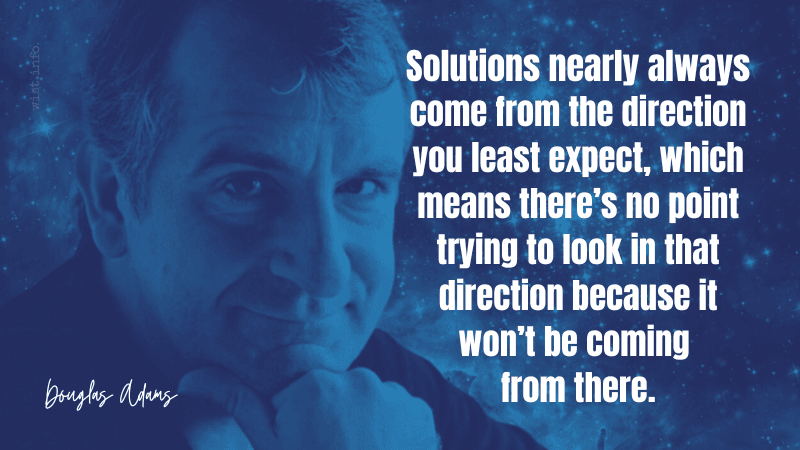 Solutions nearly always come from the direction you least expect, which means there’s no point trying to look in that direction because it won’t be coming from there.